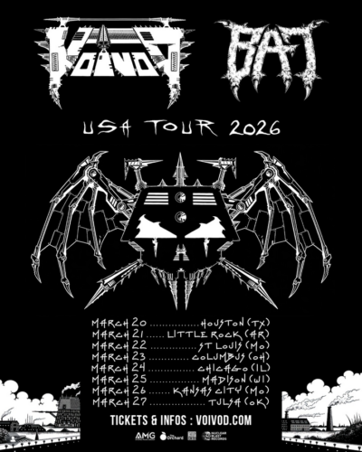 Os visionários canadenses do Metal Cósmico VOIVOD farão uma turnê pelos Estados Unidos na primavera do ano que vem, passando por oito cidades. O giro, que começa em 20 de março em Houston, contará com o suporte da BAT, trio de Metal-Punk de Richmond, Virgínia, formado por Ryan Waste, Nick Poulos e Chris Marshall. O...