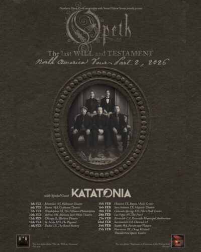 A banda sueca de Metal Progressivo OPETH embarcará na turnê “The Last Will and Testament North American Tour Parte 2” em fevereiro de 2026. O apoio durante a turnê será do Katatonia. A pré-venda dos artistas acontecerá ao vivo às 12h (horário de Brasília) de hoje. A venda geral será na sexta-feira, 26 de setembro,...
