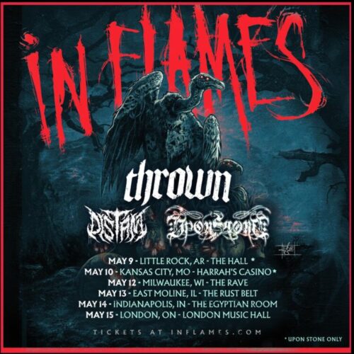 Recentemente, o IN FLAMES anunciou uma série de shows como headliner nos Estados Unidos durante o mês de maio, entre suas participações nos festivais Welcome To Rockville e Sonic Temple. A turnê contará com seis datas, incluindo uma apresentação no Canadá, em London, Ontário. As bandas de abertura serão Thrown, Distant e Upon Stone.