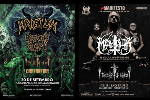 A primeira apresentação será em Florianópolis (SC), no dia 20 de setembro, na casa de shows Célula Show Case. Na ocasião, a TORCHES OF NERO abrirá para o Krisiun e os americanos do Malevolent Creation. Já em 2 de novembro, a banda segue para São Paulo para tocar no Manifesto Bar. Desta vez, ela se juntará à banda sueca Marduk, que celebrará 35 anos de carreira e tocará o clássico álbum “Panzer Division Marduk” (1999) na íntegra.